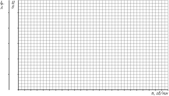 Снять характеристику работы генератора переменного тока с регулятором напряжения. Данные занести в таблицу и построить график.