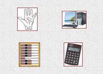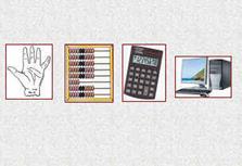 1. Подготовительная работа. - Все вы знаете, что компьютер сейчас работает и с числовой, и с текстовой, и с графической, и со звуковой и с видео информацией. Но первый компьютер был создан как вычислительная машина. Поэтому он так и назывался ЭВМ – электронно-вычислительная машина. Перед вами карточки с изображением вычислительных “приборов”. (Пальцы, счеты, калькулятор, компьютер). Задание: Перечислите их в порядке появления.