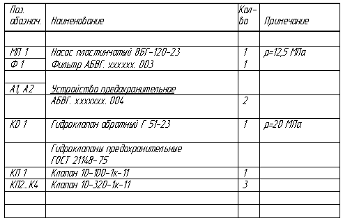 Рисунок 8.2 – Пример оформления таблицы для перечня элементов схемы