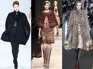 К таким пальто можно отнести пончо, кейпы или палантины (рис. 1). Все эти фасоны вновь становятся актуальными и смотрятся свежо, хотя уже были в моде много лет назад. Такие изделия отлично подходят для осени и весны, заменяя куртки и плащи. Ведь по сравнению с ними то же самое пончо выглядит намного эффектнее, а сама форма более мягкая, аккуратная, что способствует подчеркиванию женственности в образе. Эти фасоны представлены в разных цветовых и шьются не только из шерсти, но и из других тканей – меха, трикотажа, твида. [1] Рисунок 1 – Пальто-накидки