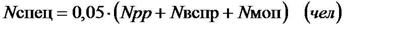 Nспец-специалисты Nмоп-младший обслуживающий персонал (чел) Nрр-количество ремонтных рабочих (чел) Nвспр-количество вспомогательных рабочих (чел) Специалисты-работники, выполняющие инженерно-технические, управленческие, экономические и другие работы.