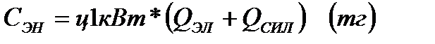 где: ц1кВт- цена одного киловатта: 15 (тг) Сэл-стоимость электроэнергии тг Qэл-объем потребляемой электроэнергии кВт Qсил- объем потребляемой силовой энергии кВт