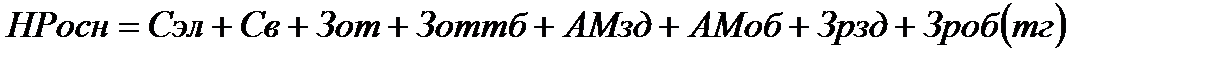 НРосн- основные накладные расходы Сэл- стоимость электроэнергии(тг) Св- стоимость воды(тг) Зот- затраты на отопления (тг) Зоттб- затраты на охрану труда и технику безопасности(тг) АМзд- амортизация здания(тг) АМоб- амортизация оборудования(тг) Зрзд- затраты на ремонт здания(тг) Зроб- затраты на ремонт оборудования (тг)