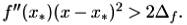 В методах прямого поиска при вычислении значений минимизируемой функции f (x) неизбежно возникают погрешности, к которым чувствительны алгоритмы прямого поиска, основанные на сравнении значений функции в отдельных точках. Пусть f (x) — дважды непрерывно дифференцируемая функция в окрестности точки x *строгого локального минимума, значения которой вычисляются с абсолютной погрешностью, не превышающей ∆ f. Оценим абсолютную погрешность ∆ *, с которой может быть найдена точка х *с применением метода прямого поиска. Для представления функции f (x) в окрестности точки х *воспользуемся формулой Тейлора с учетом равенства f (x *) = 0: