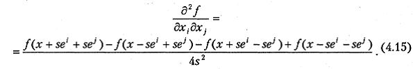 Достоинством подхода, основанного на применении формул численного дифференцирования, кроме его универсальности, является низкая стоимость подготовки задачи к компьютерному моделированию. От пользователя требуется лишь написание программы для вычисления значения J (x) при заданном х. Реализованные на основе численных производных методы оптимизации оказываются, по существу, прямыми методами, то есть методами, не использующими в своей схеме производные от J. Действительно, заменяя Все рассматриваемые нами методы оптимизации строятся на основе использования локальной квадратичной модели минимизируемого функционала, получаемой из общего разложения в ряд Тейлора. Естественно поэтому при выборе формул численного дифференцирования также руководствоваться идеей локальной квадратичной аппроксимации. Исходя иа этого, целесообразно вместо формул с односторонними приращениями применять двусторонние конечно- разностные аппроксимации производных, оказывающиеся точными для квадратичных функционалов. Действительно, легко проверить, что если