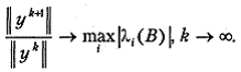 Согласно хорошо известному из курса численного анализа степенному методу определения максимального собственного числа симметричной матрицы, в результате проведения процесса (5.17) может быть получена оценка максимального собственного числа матрицы B: