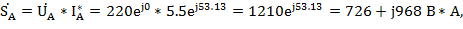 Где SA=1210 В*А, РА=726 Вт, QA=968 Вар;
