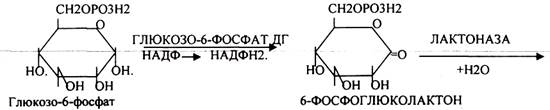 ГЕКСОЗОМОНОФОСФАТНЫЙ ПУТЬ (ПЕНТОЗНЫЙ, АПОТОМИЧЕСКИЙ) протекает в цитоплазме клетки и представлен 2 ветвями: окислительной и неокислительной. Особенно активно этот путь протекает в тех органах и тканях, в которых активно синтезируются жиры (печень, почки, жировая и эмбриональная ткань, молочные железы). Биологическая роль этого пути окисления глюкозы связывается прежде всего с производством двух веществ: 1.НАДФ*Н2, который в отличии от НАДН2 не используется вдыхательной цепи МИТОХОНДРИЙ, а поступает клетке для реакций синтеза и восстановления веществ. 2.РИБОЗО-5-ФОСФАТА и др. ПЕНТОЗ, которые используются в клетке для синтеза важнейших биологических молекул: ДНК, РНК, НТФ (АТФ, ГТФ, ЦТФ, ТТФ), Н5КОА, НАД, ФАД). Следовательно, основная биологическая роль - АНАБОЛИЧЕСКАЯ. Неокислительная стадия ПЕНТОЗНОГО ПУТИ окисления глюкозы даёт субстраты, которые в анаэробных условиях поддерживают ГЛИКОЛИЗ (ФРУКТОЗО-6-ФОСФАТ, ГЛИЦЕРАЛЬДЕГИД-3-ФОСФАТ). Т.о. поддерживается биоэнергетика клетки в ГИПОКСИЧЕСКИХ ситуациях. Окислительная стадия представляет 5 реакций и предусматривает образование ПЕНТОЗ. ГЕКСОЗОМОНОФОСФАТНЫЙ путь отличается от ГЕКСОЗОДИФОСФАТНОГО пути с этапа превращения глюкозо-6-фосфата.