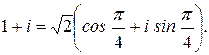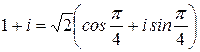 Пример 5. Представить число комплексное число На практике, как правило, применяются два алгоритма: аналитический или геометрический (графический). 1 способ (аналитический). В этом случае сначала определяют модуль комплексного числа: Заметим, что найдя модуль комплексного числа 2 способ (геометрический). Отмечаем на комплексной плоскости точку P (1; 1) и радиус-вектор