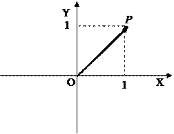 Обозначив точкой L основание перпендикуляра, опущенного из точки Р на ось OY, точкой М – основание перпендикуляра, опущенного из точки Р на ось ОХ, получим квадрат OLPM со стороной 1. Длина диагонали ОР квадрата, равна модулю вектора