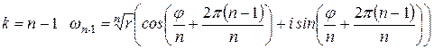 Определение 10. Корнем n-й степени из комплексного числа z называется число Обозначение: Теорема 5. Для любого комплексного числа z