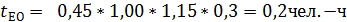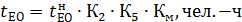 где: tEO- нормативная трудоемкость ежедневного обслуживания, чел.-ч (принимается но табл. 2.2 [6]); К2- коэффициент корректирования нормативов в зависимости от модификации подвижного состава и организации его работы (принимается по табл. 2.9 [6]); К5 - коэффициент корректирования нормативов в зависимости от количества обслуживаемых и ремонтируемых автомобилей на ТМП и количества технологически совместимых групп подвижного состава (принимается по табл. 2. 12 [6]); Км (ЕО) - коэффициент механизации, снижающий трудоемкость ЕО, рассчитаем по формуле: