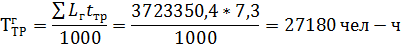где: Асс - среднесписочное количество автомобилей в ТМП, ед. Общую годовую трудоемкость для всех видов ТО рассчитаем по формуле: