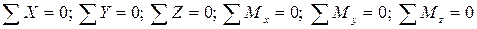 момент относительно оси z ( моменты относительно осей x, y ( Запишем для оставленной части тела уравнения равновесия (уравновесим):