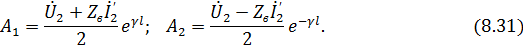 Подставляя (8.31) в (8.30), выражаем коэффициент отражения через ток и напряжение в конце линии: