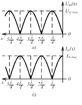 На практике координаты узлов и пучностей удобно отсчитывать от конца линии в долях длины волны λ. Узлы напряжения (тока) и пучности напряжения (тока) чередуются с интервалом λ /4, а расстояние между соседними узлами (или пучностями) равно λ /2.