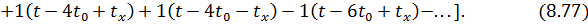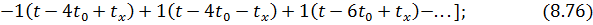 Как следует из этих выражений, напряжение и ток в произвольном сечении линии x представляют собой сумму скачков, каждый из которых появляется в момент прихода в данное сечение падающей или отраженной волны. Первый скачок возникает в момент прихода падающей волны, второй — в момент прихода волны, отраженной от нагрузки, третий скачок соответствует волне, отраженной от источника, четвертый — волне, повторно отраженной от нагрузки, и т. д. При 0 < t