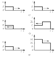 При t0 < t < 2t0 (рис. б) отраженная волна распространяется в направлении уменьшения x, при этом напряжения падающей и отраженной волн суммируются, а их токи вычитаются (напряжение линии становится равным 2 E, а ток — 0). В момент времени t = 2t0 волна, распространяющаяся от нагрузки, достигает источника и отражается от него, при этом напряжение и ток волны изменяют знак (внутреннее сопротивление источника (это ZH в начале линии) равно нулю и, поэтому, коэффициент отражения (ZH – ZB)/(ZH + ZB) равен -1). При 2t0 < t < 3t0 волна, отразившаяся от источника, распространяется в направлении возрастания x, напряжение линии становится равным E, а ток — равным – I0 рис. в). В момент времени t = 3t0, происходит повторное отражение волны от нагрузки. При 3t0 < t < 4t0 волна, повторно отраженная от нагрузки, распространяется в направлении уменьшения x (рис. г), а напряжение и ток линии становятся равными нулю. В момент времени t = 4t0 волна повторно отражается от источника, и процессы в линии повторяются (рис. д). Итак, ток в конце линии все время равен нулю, а напряжение имеет форму импульса амплитудой 2 E и длительностью 2t0, что полностью соответствует полученным ранее результатам. Используя аналогичную методику, можно рассмотреть и переходные процессы в короткозамкнутой на конце линии, подключаемой к источнику постоянного напряжения. В этом режиме коэффициенты отражения линии от источника энергии и нагрузки равны — 1, следовательно, при каждом отражении напряжение и ток волны изменяют знаки (рис в ).