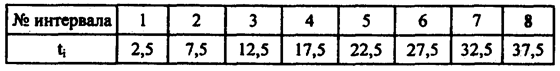 Решение. 1. Для каждого интервала вычислим его середину по формуле