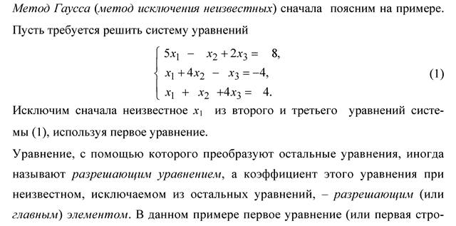 Лабораторная работа ЧИСЛЕННЫЕ МЕТОДЫ РЕШЕНИЯ СЛАУ МЕТОД ГАУССА Цели работы: 1. Углубленное изучение численных методов решения СЛАУ. 2. Приобретение навыков решения СЛАУ на ЭВМ путём программирования на языке высокого уровня и с применением математических компьютерных систем. Основные теоретические сведения