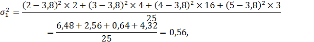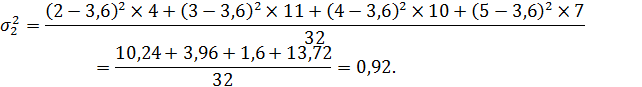 Далее рассчитывается среднее значение из групповых дисперсий: