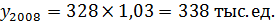 Для 2008 г. уровень ряда взят 338 тыс. ед.: