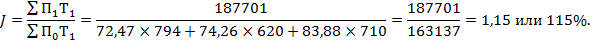 Далее, используя формулы агрегатного индекса производительности труда, определяется общий индекс данного показателя.