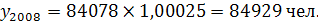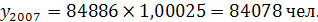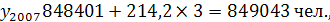 Прогноз численности населения на 2007 год равен: