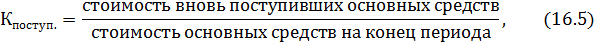 Он показывает долю всех поступивших в отчетном периоде основных фондов в их общем объеме на конец периода.