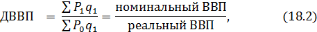Для наиболее общей характеристики уровня инфляции в мировой практике используются два показателя: дефлятор валового национального продукта (ДВНП) и индекс потребительских цен (ИПЦ). В России рассчитывается показатель дефлятор валового внутреннего продукта (ДВВП). Он оценивает степень инфляции всей совокупности благ, произведенных и потребленных в государстве. Дефлятор ДВВП учитывает изменение цен на товары, не только потребленные населением, но и используемые в государственных интересах, инвестициях, для экспорта и импорта. Дефлятор ВВП в России определяется по агрегатной формуле Пааше: