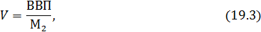 где ВВП – валовой внутренний продукт в текущих ценах (ВВП= М2 – совокупный объем денежной массы в изучаемом периоде, определяемой как средние остатки денег за период.
