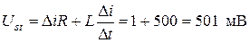 Реальное значение помех Ust распределяется в диапазоне от мВ до В, например для рис. 3.2. Напряжение между точками 1 и 2 при длине провода