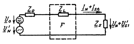 F – фильтр низкой частоты, собственное сопротивление которого zL мало для полезного сигнала ( Коэффициент затухания фильтра оценивается в виде логарифма отношения напряжений и выражается в децибелах и зависит от параметров фильтра, от полных сопротивлений источника и от приемника сигналов: