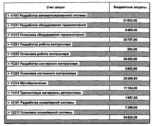 Рис. 14.5.3. Отчет о распределении бюджетных средств по счетам затрат Бюджет является документом, определяющим ресурсные ограничения проекта, поэтому при управлении стоимостью на первый план выходит затратная его составляющая, которую принято называть сметой проекта. Контрольные вопросы и задания 1. Чем определяется стоимость проекта? 2. Дайте определение понятию " бюджет" проекта. 3. Дайте определение понятию " смета" проекта. 4. Перечислите виды оценок стоимости проекта и укажите, на каких стадиях они применяются. 5. Перечислите ресурсы, которыми определяется стоимость проекта. 6. Перечислите шаги по оценке затрат проекта. 7. Дайте определение понятию " бюджетирование". 8. От чего зависит форма представления бюджетов? 9. Перечислите типы бюджетов в зависимости от стадии жизненного цикла. 10. Перечислите основные понятия традиционного метода контроля и метода освоенного объема. 11. В чем состоит сущность прогнозирования затрат? * 12. В чем состоит цель составления и предоставления отчетности? а