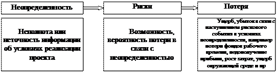 Рис. 21.1.1 Взаимосвязь категорий «неопределенность» -«риск» - «потери»