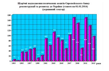 Європейський банк реконструкції і розвитку (далі - ЄБРР або Банк) був створений у 1991 році з метою сприяння країнам Центральної і Східної Європи та Співдружності Незалежних Держав (СНД) у становленні ринкової економіки після краху адміністративно-командної системи. Сприяючи процесу переходу до орієнтованої на ринок економіки, Банк надає пряме фінансування для діяльності приватного сектору, структурної перебудови і приватизації, а також фінансування інфраструктури, що підгримує таку діяльність. Його капіталовкладення допомагають також будівництву і зміцненню організаційних структур. Основними формами фінансування ЄБРР є кредити, вкладення в акціонерні капітали (акції) і гарантії. ЄБРР розташований у Лондоні, він є міжнародною організацією, до складу якої входять 60 членів (58 країн, Європейське співтовариство і Європейський інвестиційний банк). Кожна країна-член представлена в Раді керівників і Раді директорів банку. ЄБРР фінансує проекти як у приватному, так і в державному секторах, надаючи пряме фінансування кредитним організаціям, а також підприємствам інфраструктури, промисловості та торгівлі. За допомогою його капіталовкладень також ведеться підготовка кваліфікованих кадрів, підвищується ефективність функціонування ринків і зміцнюється їхня організаційна база. Основою співробітництва України з ЄБРР є його стратегія допомоги нашій державі. В рамках прийнятої стратегії ЄБРР працює у двох напрямках: надання міжнародних кредитів на пільгових умовах під гарантії Уряду та кредитування приватних підприємств України на комерційних умовах.