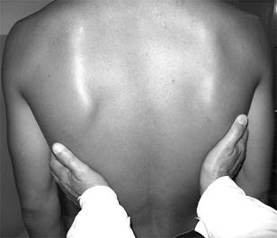 Рис. 18. Методика определения голосового дрожания Ослабление голосового дрожания возникает при закупорке (обтурации) бронхов и возникновении обтурационного ателектаза, повышении воздушности легочной ткани (эмфизема легких), скоплении воздуха (пневмоторакс) или любой жидкости в плевральной полости (экссудат, транссудат, гематоракс, пиопневмоторакс). Обусловлено это тем, что воздух и жидкость плохо проводят звуки. Усиление голосового дрожания закономерно происходит при возникновении синдрома уплотнения легочной ткани, так как плотные участки хорошо проводят звуки. При этом обязательным условием является сохранение бронхиальной проводимости. Уплотнение легочной ткани бывает обусловлено воспалительными процессами (очаговая и крупозная пневмонии, абсцесс легкого в стадию инфильтрации, туберкулез легких, инфаркт легкого с развитием инфаркт – пневмонии), диффузным или очаговым разрастанием соединительной ткани (пневмосклероз, карнификация легкого), ростом опухоли, механическим сдавлением легочной ткани с развитием компрессионного ателектаза (при экссудативном плеврите, пневмотораксе).