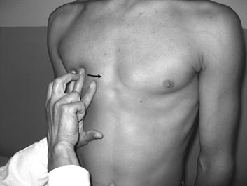 Рис. 29. Определение правой границы относительной сердечной тупости