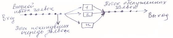 Каждая СМО предназначена для обслуживания (выполнения) некоторого последовательного потока заявок (требований), поступающих на вход системы большей частью нерегулярно, а в случайные моменты времени. Обслуживания заявок, в общем случае, также длится не постоянное, заранее известное время, а случайное время, которое зависит от многих случайных, порой неизвестных нам, причин. После обслуживания заявки канал освобождается и готов к приему следующей заявки. Случайный характер потока заявок и времени их обслуживания приводит к неравномерной загруженности СМО: в некоторые моменты времени на входе могут скапливаться заявки, в другие моменты – недогрузка СМО. Заявки, скапливающиеся на входе СМО, либо " становятся" в очередь, либо покидают СМО не обслуженными.