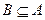 Определение 1.3. Множество A называется подмноже-ством множества B, если каждый элемент множества A принадлежит и множеству B. Это обозначается A Пустое множество считают подмножеством любого множества. Если множество A не является подмножеством множества B, то пишут A