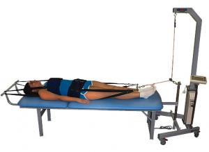 Рис. 6. Тракционная терапия. При проведении процедуры тракционного лечения рекомендуется соблюдать определенную последовательность: горизонтальная плоскость - наклонная плоскость - вертикальная плоскость (гимнастическая стенка). Вытяжение целесообразно сочетать с корригирующими упражнениями путем симметричного и асимметричного воздействия. В терапии сколиотической болезни используются, помимо активной коррекции, средства пассивной коррекции. К средствам пассивной коррекции относится лечение положением, которое оказывает положительное воздействие на связочно-мышечный аппарат деформированного позвоночника и закрепляет достигнутый физическими упражнениями корригирующий эффект. Для проведения коррекции бокового искривления пациента укладывают на бок и затем подкладывают валик под выпуклую часть деформированного отдела позвоночника (рис.7).