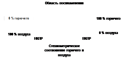 Рис. 40. Схема концентрационных пределов распространения пламени