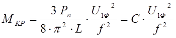 Осн. Достоинство: при изменении частоты питающей сети прямопропорционально меняется синхронная скорость Если принять R1 = 0, то где L – индуктивность КЗ. Следовательно при ном. Частоте f Тогда критический момент Если в (3) подставить Если f