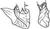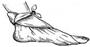 Косыночная повязка на всю стопу (рис 46 а, б). Подошвенную область закрывают серединой косынки, верхушку косынки заворачивают, укрывая пальцы и тыл стопы. Концы заводят на тыл стопы, перекрещивают, а затем обвивают вокруг голени над лодыжками и связывают узлом на передней поверхности.