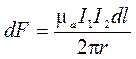 яка рівна силі dF, що діє на паралельний одиничний провідник з одиничним струмом на відстані r. У відповідності з виконанням