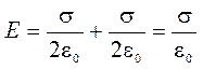 де σ – поверхнева густина (щільність) зарядів; ε 0 = 8.85· 10-12 Ф/м. Напруженість електричного поля двох паралельних площин з рівномірно зарядженими протилежними зарядами густиною σ допомагає визначити рис. 2.2.