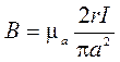 Якщо розглянути відношення Цікаво знати величину індукції B на ділянці від початку координат до поверхні провідник, тобто до точки а/2. У випадку, коли струм рівномірно розподілений по перетину провідника з густиною