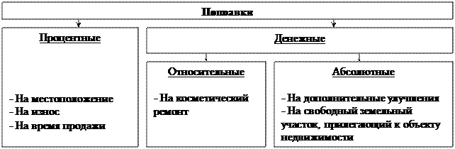 Процентные (коэффициентные) поправки – вносятся в стоимость единицы сравнения: