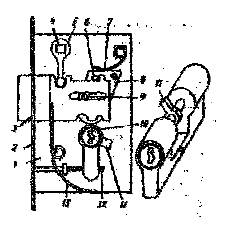 1.) основание корпуса 2.) передняя планка короба замка 3.) засов 4.) ось ручки 5.) водитель ручки 6.) стойка сувальды 7.) пружина сувальды 8.) сувальда 9.) направляющая стойка 10.) корпус цилиндра 11.) поводок 12.) винт корпуса 13.) пружина засова
