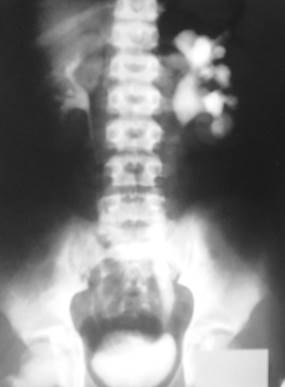 Мужчина 54 лет, инженер, при диспансерном осмотре предъявляет жалобы на ощущение дискомфорта и тяжести в пояснице. Анамнез: страдает сахарным диабетом в течение 7 лет, принимает 2 таблетки диабетона в сутки. За последние 5 лет дважды лечился по поводу «инфекции мочевых путей» (со слов больного). Вес стабильный. Настоящее ухудшение в течение 8 дней. Объективно: состояние удовлетворительное. Рост 173 см, вес 76 кг. Кожные покровы обычной окраски. Температура тела 36, 8оС. Отеков нет. Легкие: дыхание везикулярное, хрипов не слышно, чдд 18 в мин. Сердце: тоны ясные, ритмичные, чсс 76 в минуту. АД d=s 140/90 мм рт.ст. Живот мягкий, безболезненный. Печень не выступает из-под края реберной дуги, размеры по Курлову 12 х 10 х 8 см. Почки не пальпируется. Симптом поколачивания в области поясницы слабоположительный слева. Обследование: анализ крови: Эритроциты 4, 2 х 10в 12 Hb 122 г/л, лейкоциты 7, 6 х 109/л, п-6%, с- 72%, л-18%, м- 4%. СОЭ 15 мм/ч. Общий анализ мочи: относительная плотность 1012, реакция щелочная, белок- 0, 33 г/л, лейкоцитов 15-20 в поле зрения. При бактериологическом исследовании мочи выявлен энтерококк, концентрация микробных тел 105 в 1 мл. Биохимический анализ крови: глюкоза натощак 6, 5 ммоль/л, мочевина сыворотки крови 7, 8 ммоль/л, креатинин 110 мкмоль/л. Инструментальное обследование (см. рисунок):
